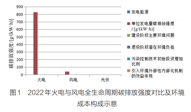 随着对生态环境影响评估的深入,电力工程在全生命周期内的环境影响已成为造价管理中不可忽视的重要因素。诸如燃煤电厂运行过程中排放的二氧化碳、硫化物及颗粒污染物,不仅加剧全球变暖趋势,还对区域空气质量构成威胁;而风电、光伏等可再生能源项目虽清洁能源占比高,但在建设阶段仍涉及土地征用、生态破坏及废弃组件回收难题。根据 《2023年全球电力评论》 和 《2022年电力二氧化碳排放因子发布:华北地区最高,西南地区最低!》等报告,2022年火电单位发电量的碳排放强度约为830 g/(kW·h),而风电的碳排放强度仅为40 g/(kW·h)左右,见图1。