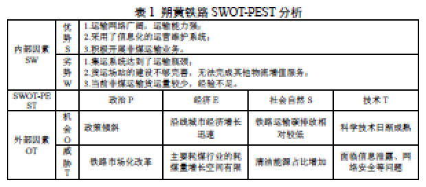 朔黄铁路的内外部因素的SWOT-PEST分析矩阵,如表 1所示。