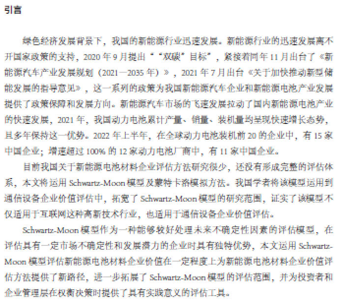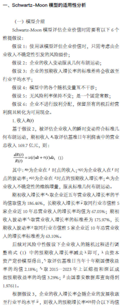 【关键词】企业价值评估;Schwartz-Moon 模型;蒙特卡洛模拟;新能源
