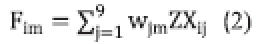 首先计算各主成分得分,把以上规范化矩阵表示的指标体系的数据导入主成分分析平台,按照特征根大于1 的规则,选出M个主成分,可以获取主成分系数矩阵W=(Wjm)9×M。根据主成分选取的规则,虽然被降维,但这M 个主成分包含了原始指标的很大部分的信息,具有代表性,因此根据主成分系数矩阵计算的得分具有比较意义。按照下式分别计算第i 个新能源上市车企第m 个主成分的得分Fim。
