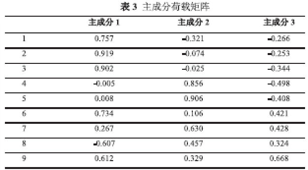 根据表2,可得出如表3 所示的主成分荷载矩阵。