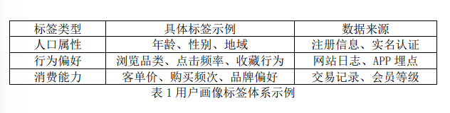 精准营销的前提是精准洞察,企业要构建统一的消费者数据平台,整合来自线上(App、小程序、官网、社交媒体)与线下(POS、CRM、IoT 设备)的全渠道数据,打通数据孤岛,利用大数据分析与人工智能算法,对数据进行深度挖掘,构建动态、多维的消费者画像(表 1:用户画像标签体系示例),画像不仅应包含人口统计学属性、消费能力等静态信息,更要涵盖兴趣偏好、购买周期、品牌互动、生活场景等动态标签,如:通过分析用户在小程序中的浏览路径、在社交媒体的互动话题,以及在门店的停留时间,可以精准识别其是“价格敏感型”“品质追求型”还是“尝鲜型”消费者,通过持续的洞察,企业能够预测消费者未来的需求和行为,实现从“事后分析”到“事前预测”的转变,如:零售巨头沃尔玛通过分析天气数据、购买历史和社交媒体趋势,能提前预测特定地区对特定商品(如暴雨前的雨具、节假日前烧烤用品)的需求激增,从而优化库存和前置营销,为营销决策提供科学依据。