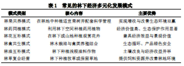 林下经济多样化开展途径着眼于经济效益及生态效益双提增,目的在于可持续发展目标的达成。比如林草共同经营模式就是通过在林下种植牧草,既能满足畜牧业饲料需求,又能避免水土流失且改良土壤构造,林药共同生活模式依靠生态化经营观念来削减化学投入品的采用量,以此保障林下生物物种多样性。