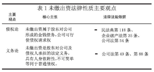当前业界未缴出资法律性质主要存在两种观点:债权论和义务论,各自核心主张及依据如下表1。