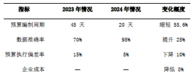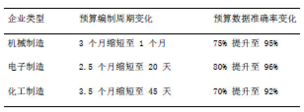 信息化背景下,制造企业可利用信息系统快速收集分析财务、销售等数据,为预算编制提供实时准确支持。系统自动汇总计算数据,减少人工干预和错误,提高数据准确性,还提供多种编制方法,使预算更科学合理。不同企业引入系统后成效显著,如下表所示: