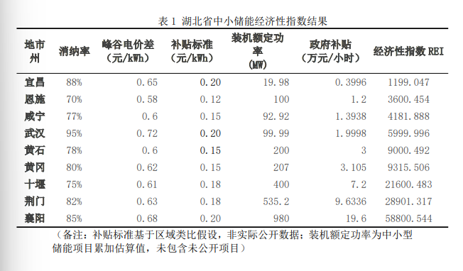 基于该模型,本文结合湖北省 9 个地级市 2023 年的数据,验证湖北省中小储能项目的经济性和区域差异化。