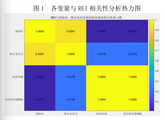 相关性分析初步结论:(1)政府补贴与经济性指数 REI 的相关系数为 1,两者完全正相关,是核心影响因素;(2)消纳率和峰谷电价差与 REI 的相关性分别为 0.1073(弱正相关)和 0.3178(中度正相关),表明二者对 REI 有一定正影响。