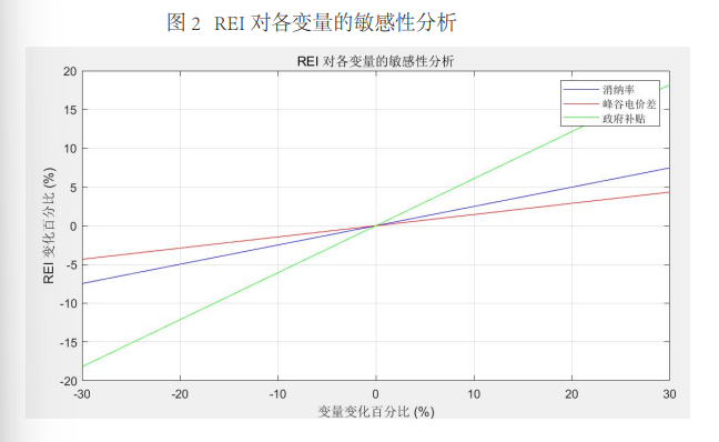 最终结论:(1)REI 对政府补贴的变化最为敏感,证实了政府补贴是影响 REI 的核心因素。(2)REI 对消纳率和峰谷电价差的变化相对不敏感,说明二者对 REI 的影响程度较低。